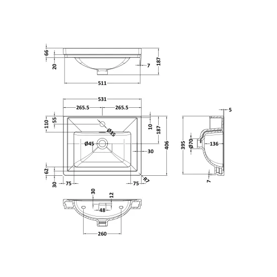 Components Fireclay Classic Basin 1 Tap Hole, 530mm