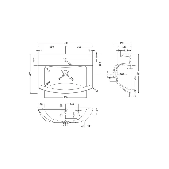 Asselby 600mm Medium Basin 1 Tap Hole