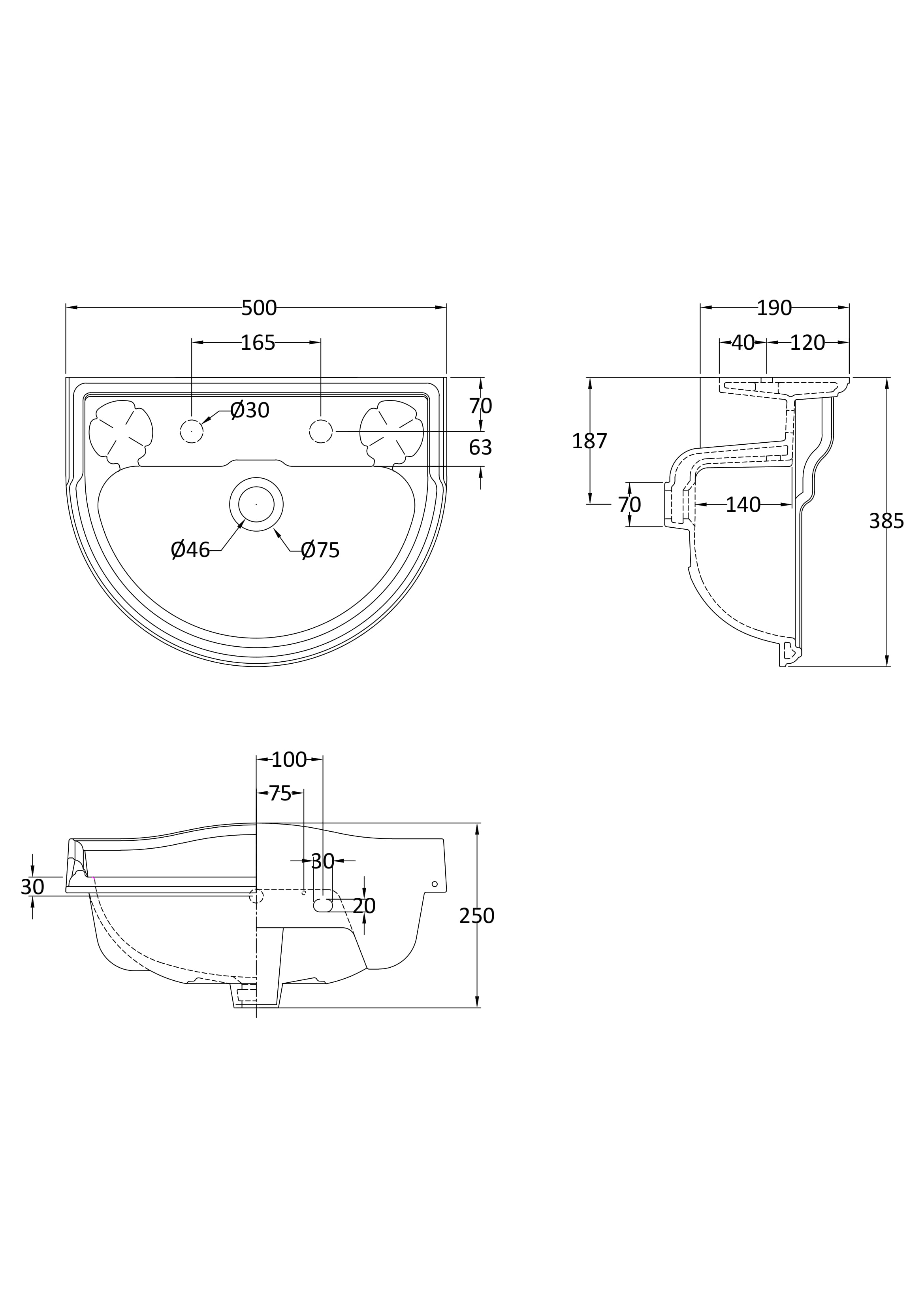 Chancery Small Cloakroom Basin 2 Tap Hole