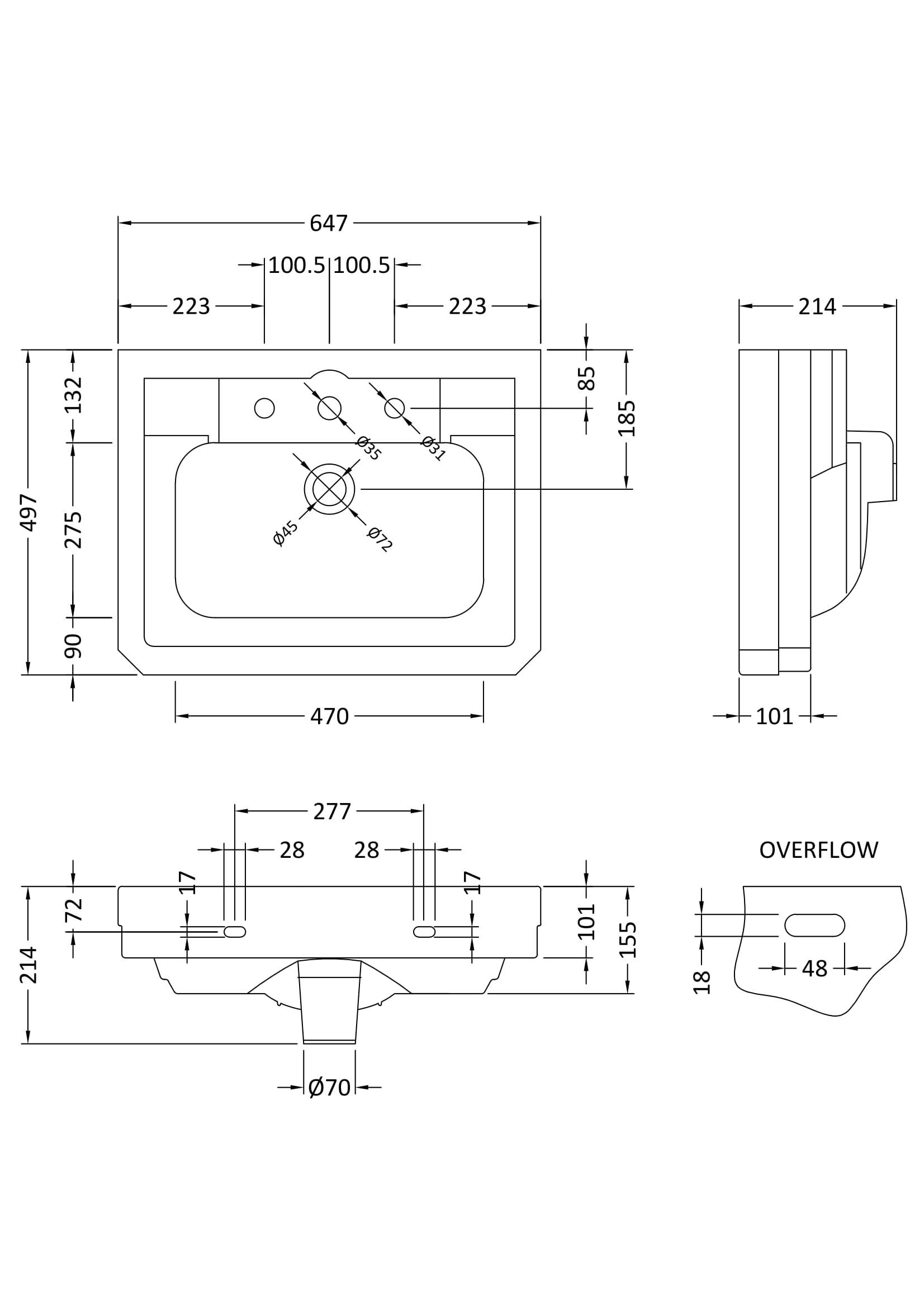 Nuie Lux Hunton 640mm Basin 3TH - White