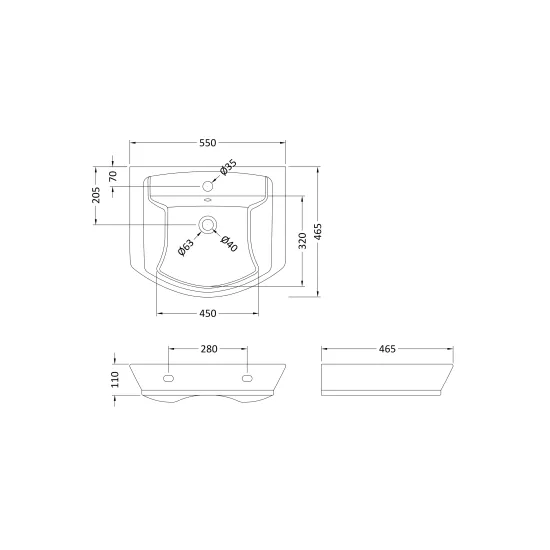 Hudson Reed Maya 550mm Basin 1 Tap Hole