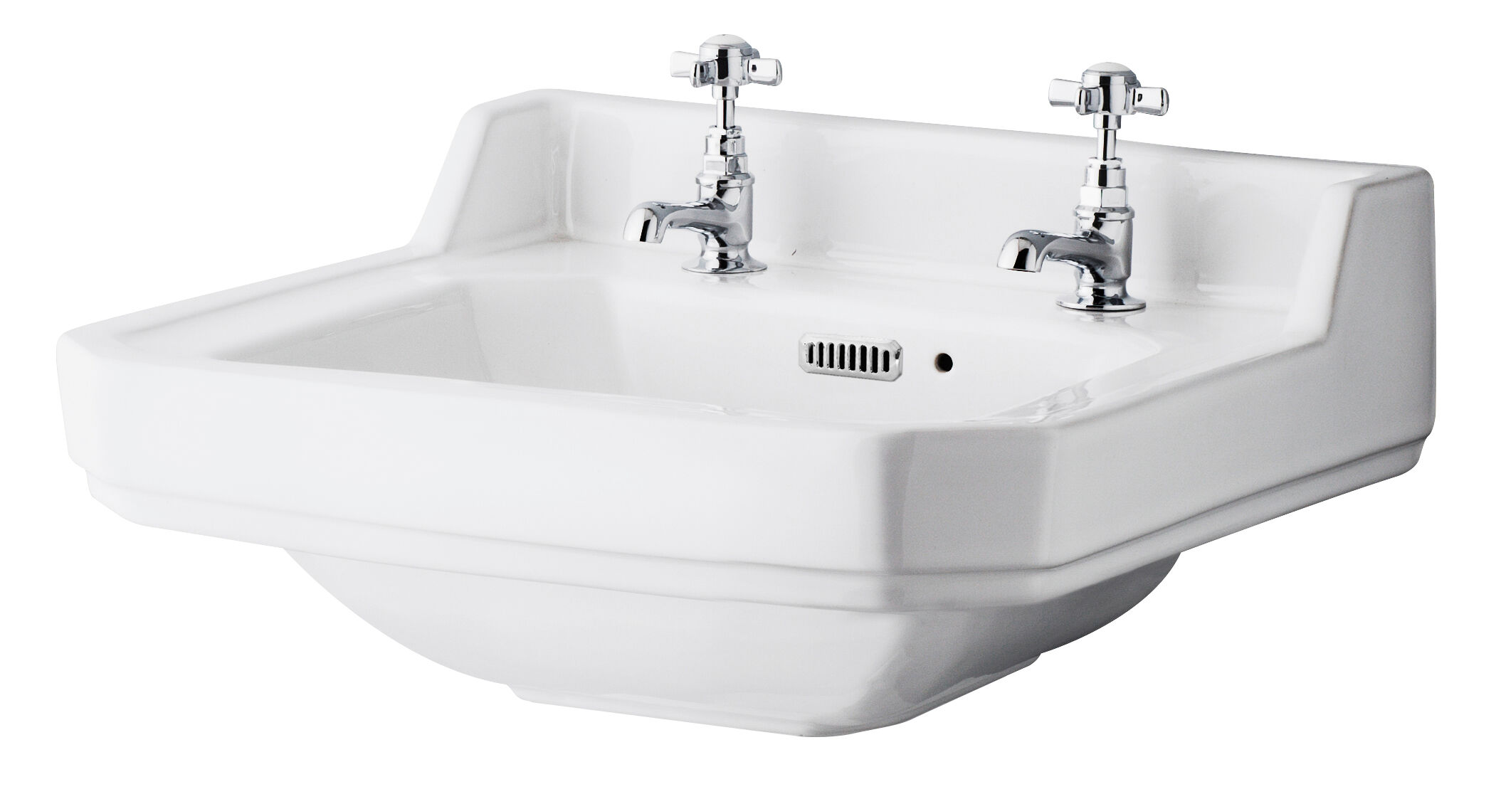Hudson Reed Richmond Wall Hung 2 Tap Hole Basin 595mm