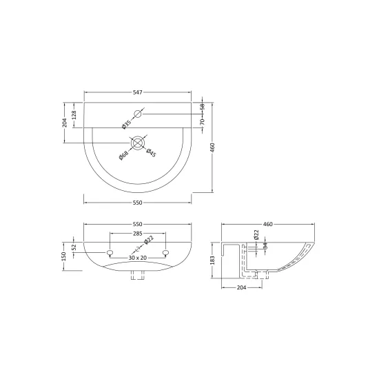 Synergy Allium 550mm Basin 1 Tap Hole