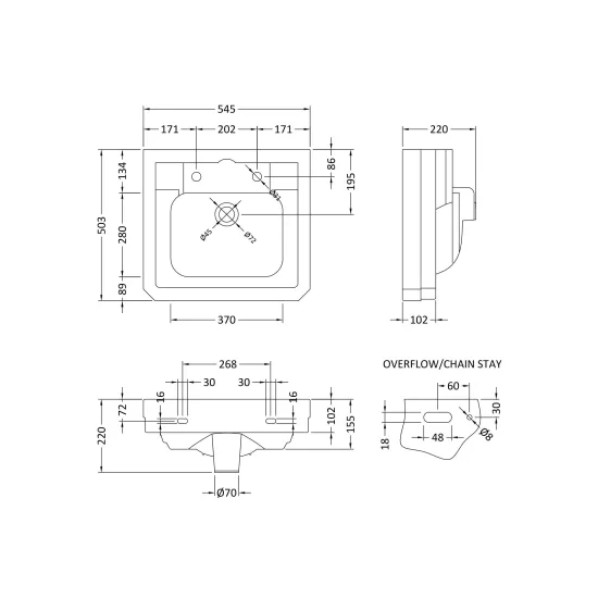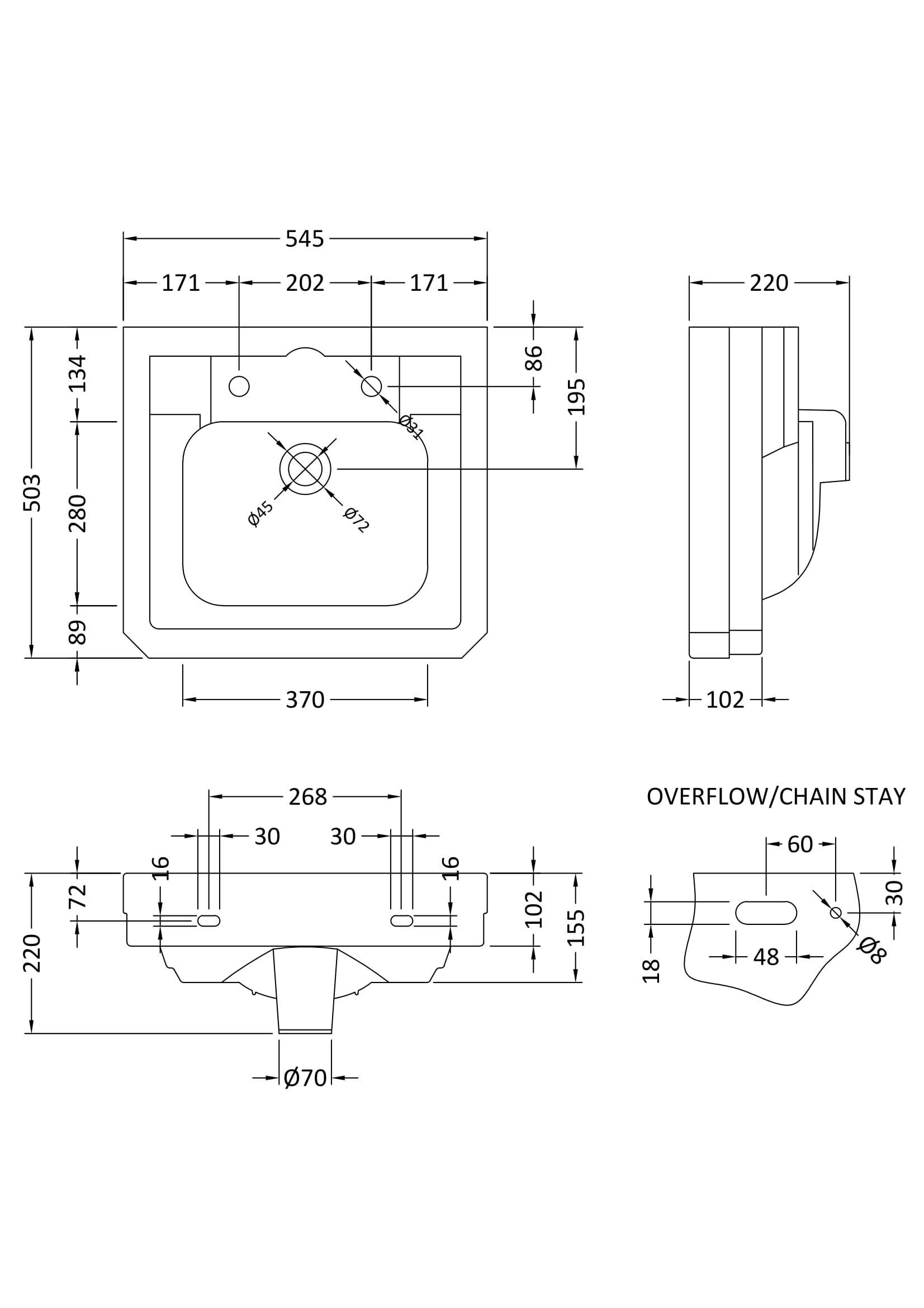 BC Sanitan Victrion Square Ceramic Basin 2 Tap Hole - 540mm - White