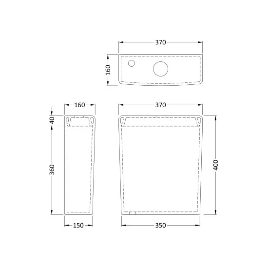 Nuie Lux Heacham Back To Wall Close Coupled Cistern - White