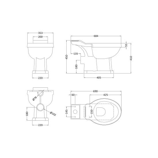 Old London Richmond Toilet Pan Close Coupled (Excluding Seat)