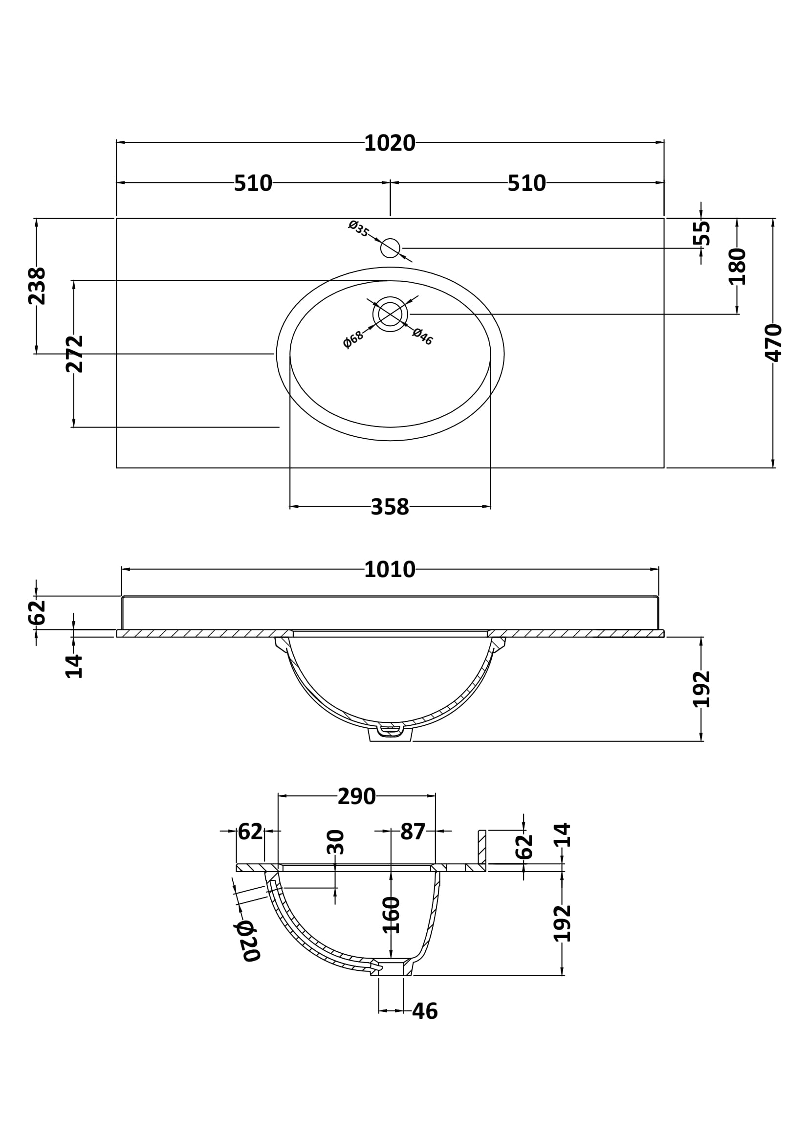 Luxuriously deep basin provides ample bathing space with room at the side for all your favourite toiletries.