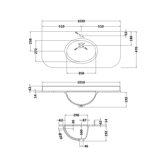 Bayswater 1000mm Single Bowl with Radius 1 Tap Hole
