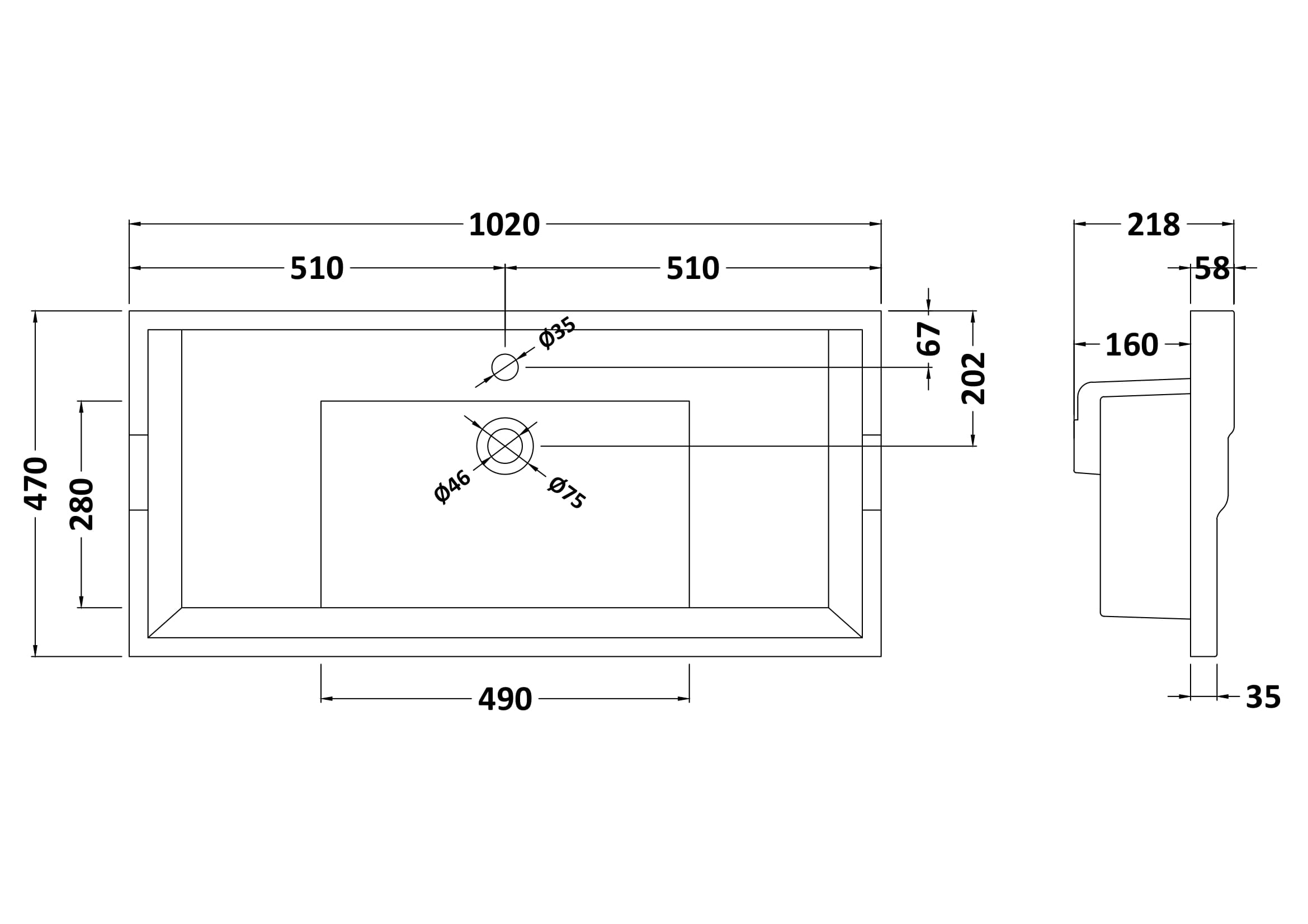 Luxuriously deep basin provides ample bathing space with room at the side for all your favourite toiletries.