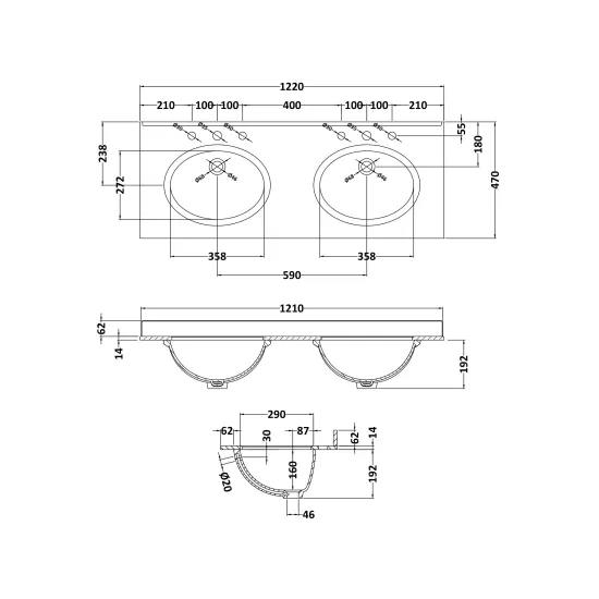 Bayswater 1200mm Double Bowl 3 Tap Holes