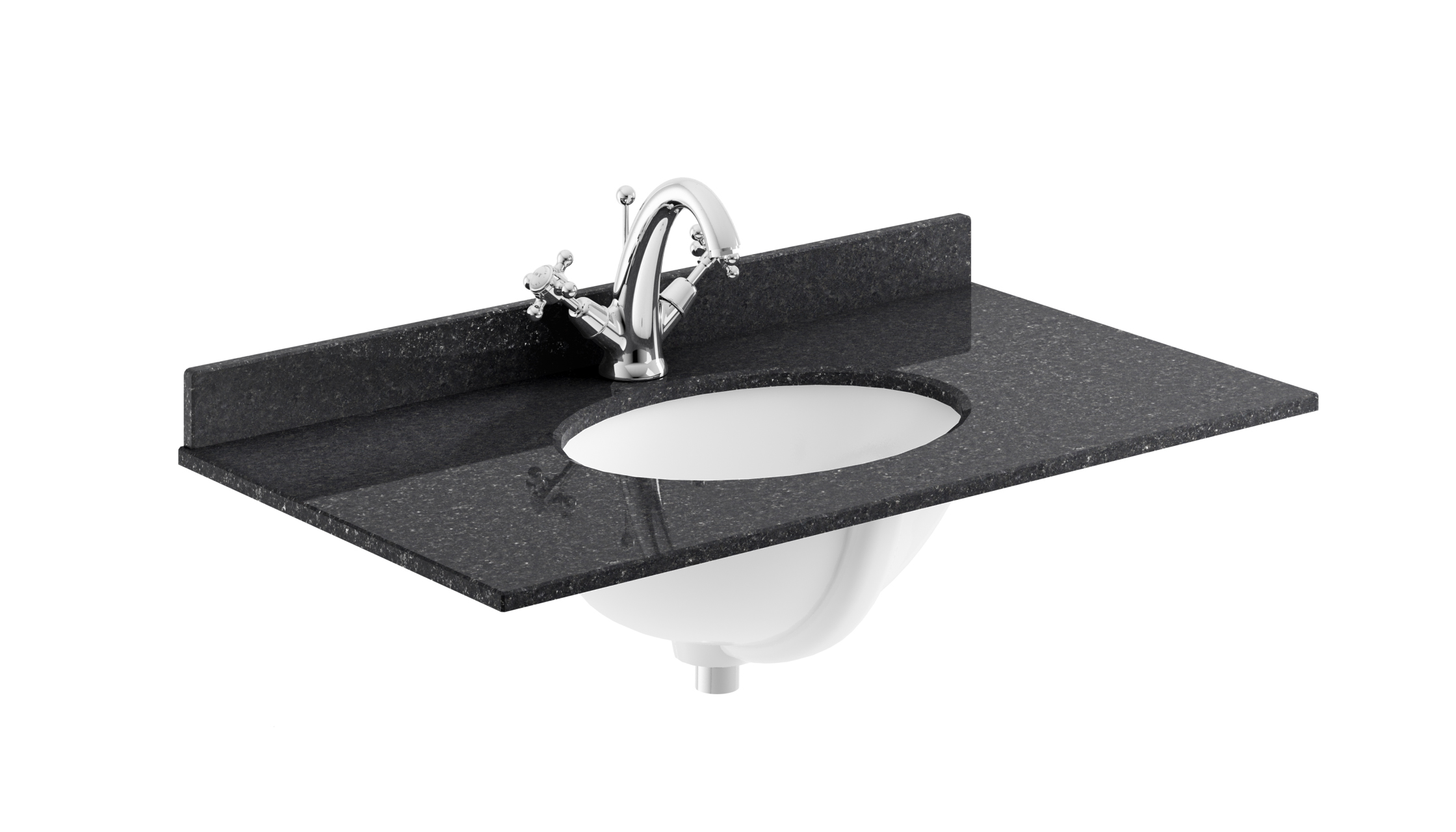 This stunning black marble top contrasts beautifully with the classic white china basin.