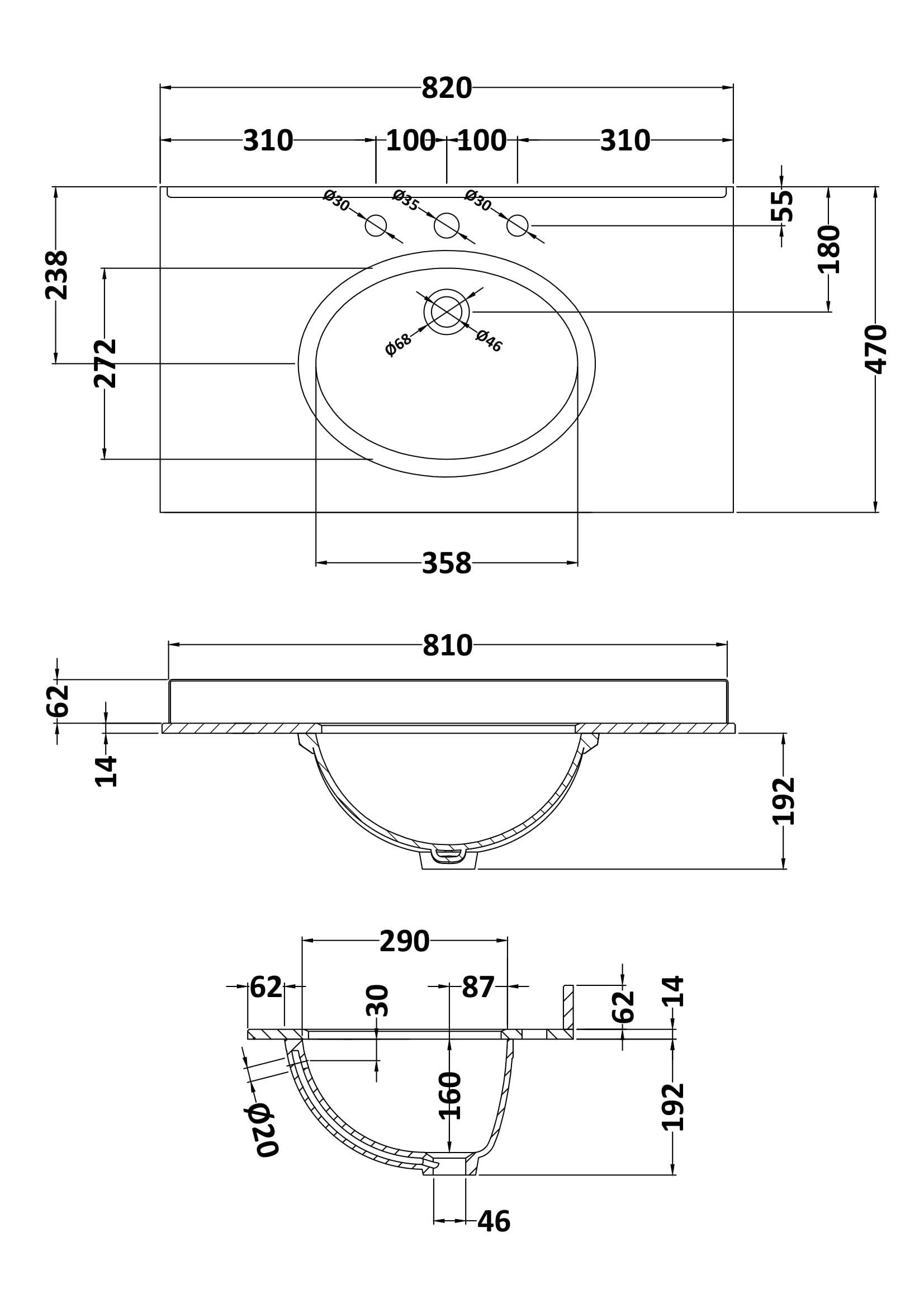 Bayswater 800mm Single Bowl 3 Tap Holes