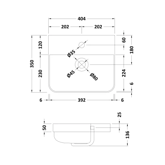 Contemporary curved ceramic furniture basin for use with the Core furniture range.