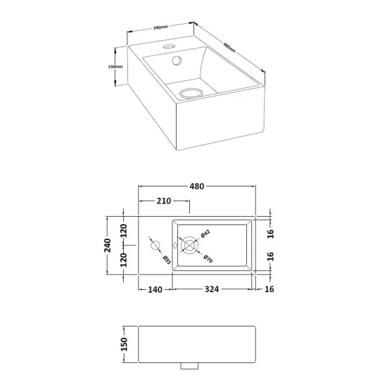 Mayford Compact Cloakroom Cubix 1 Tap Hole Basin 480mm