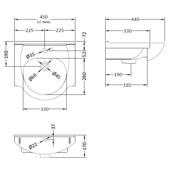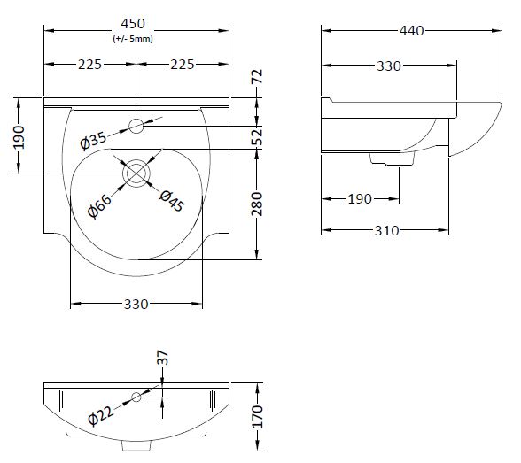 Mayford Round Ceramic 1 Tap Hole Basin 450mm
