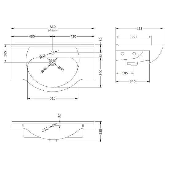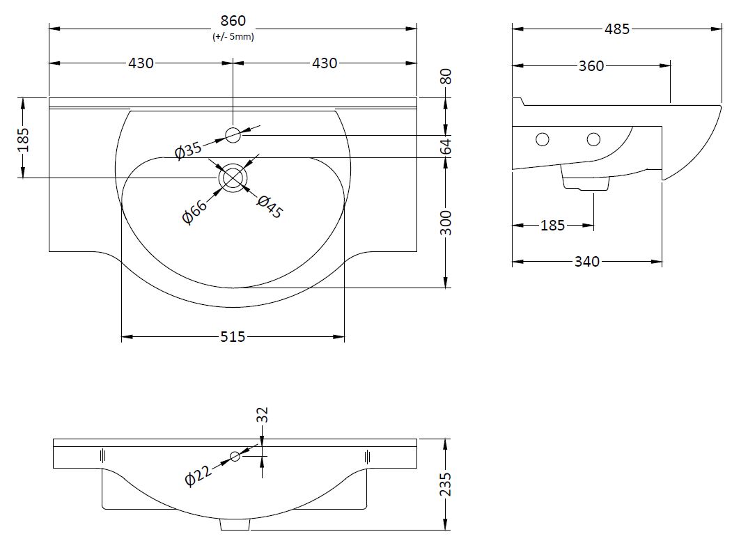Mayford Round Ceramic 1 Tap Hole Basin 850mm
