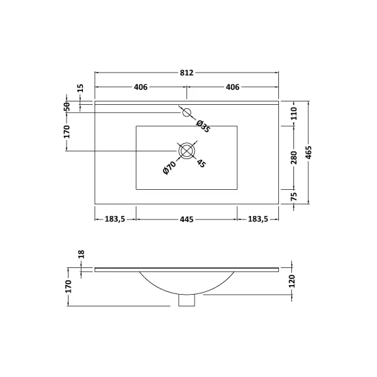 Synergy Henbury 800mm Minimal Basin- 1 Tap Hole - White