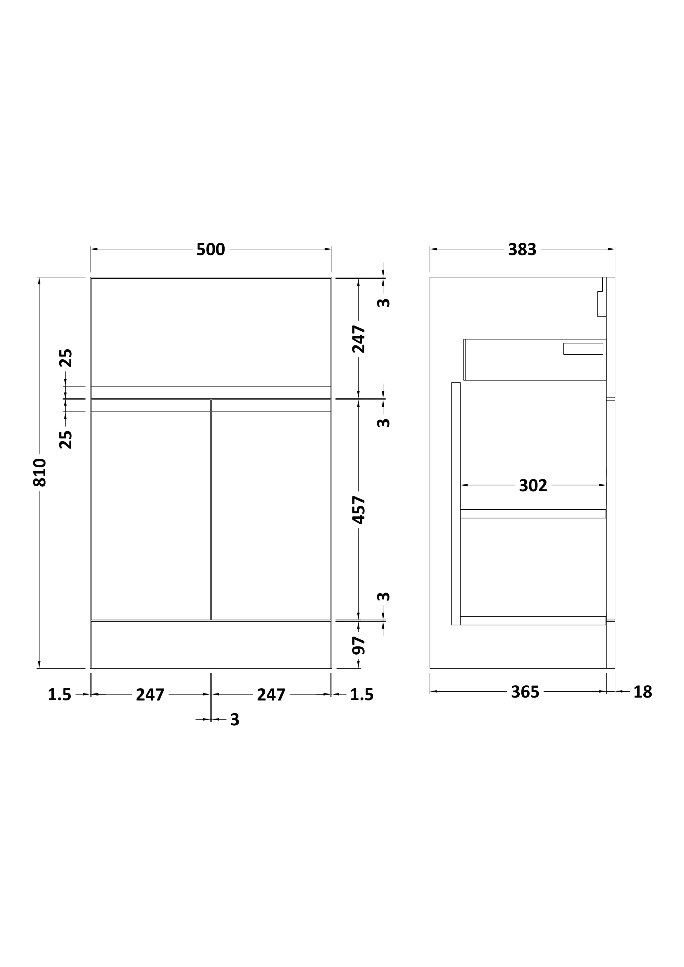 500mm Floor Standing 2 Door/Drawer Unit