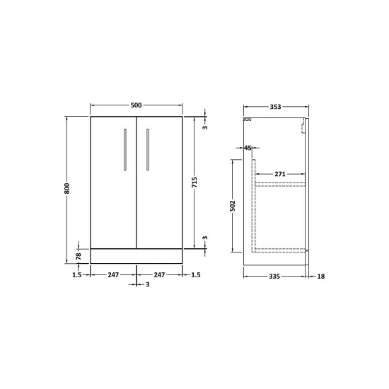 500mm Floor Standing 2 Door Unit (355) Deep
