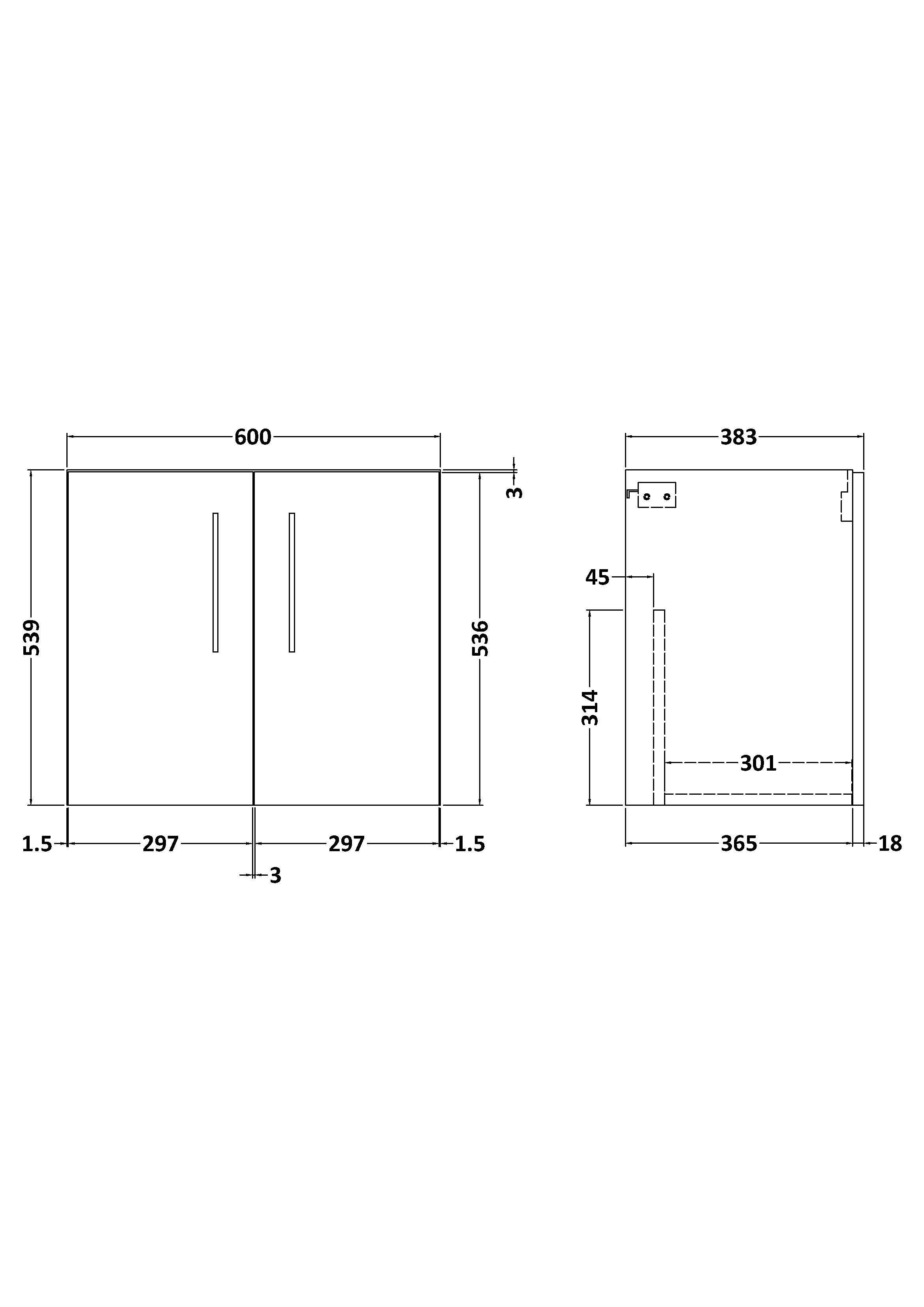 600 Wall Hung 2-Door Unit (365 Deep)