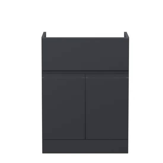 Contemporary floor standing design provides ample storage for all your bathroom toiletries and cleaning supplies.
