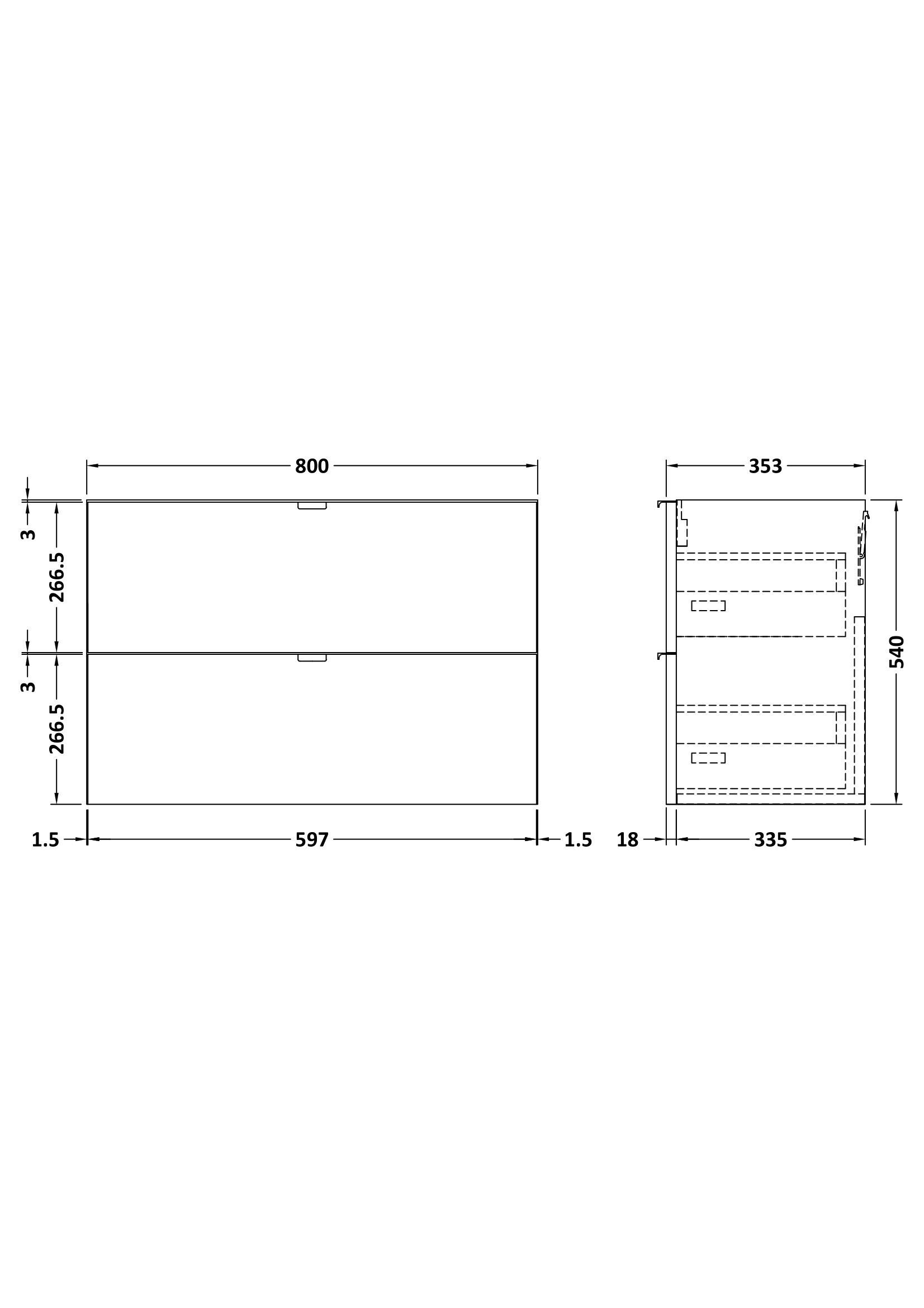 800mm 2 Drawer Wall Hung Unit (355MM)