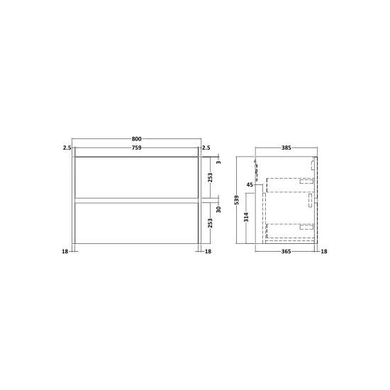 800mm Wall Hung 2 Drawer Unit (385 Deep)