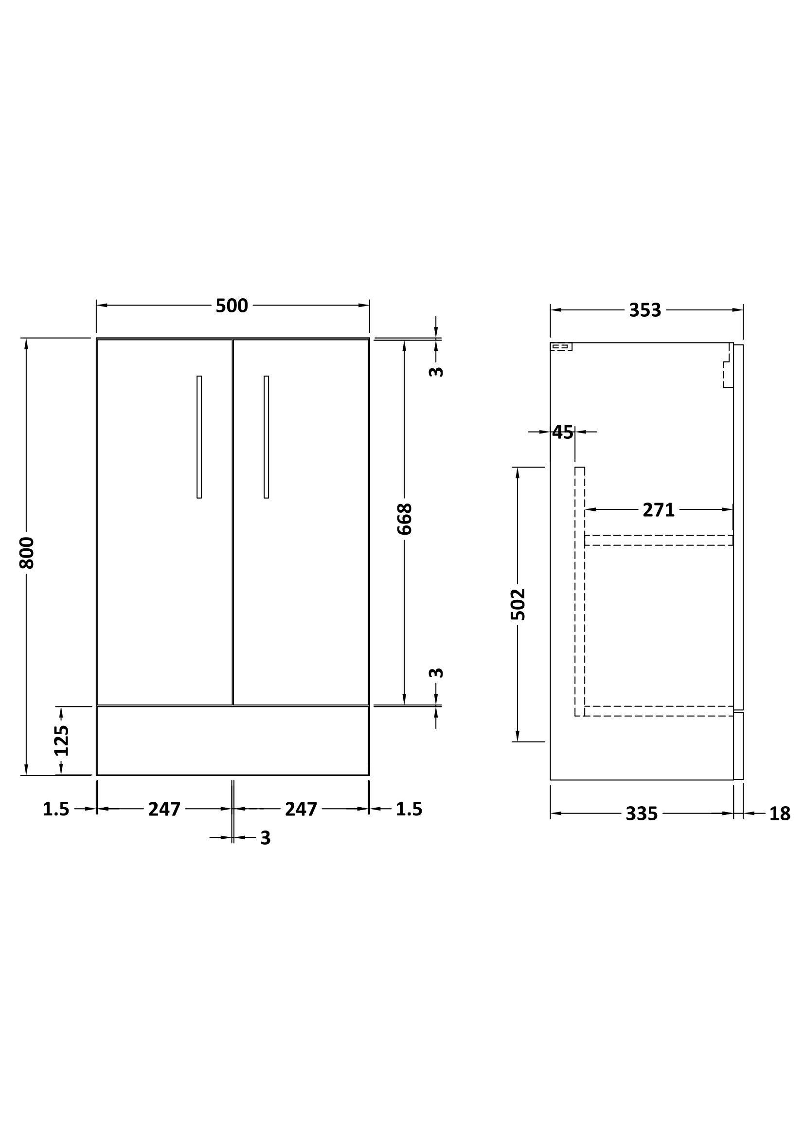 Nuie Arno 500 Floor Standing 2-Door Unit - Gloss White