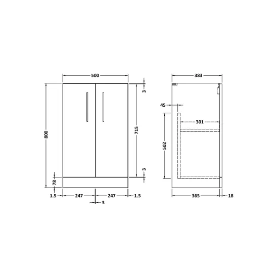 nuie Arno 500mm Floor Standing 2-Door Unit - Charcoal Black
