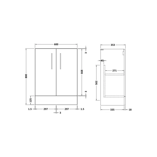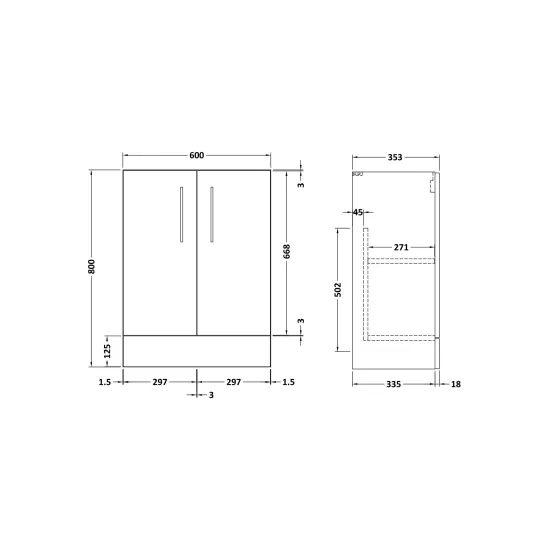 Nuie Arno 600 Floor Standing 2-Door Unit - Gloss White