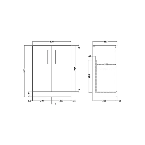 Arno 600mm Floor Standing 2-Door Unit