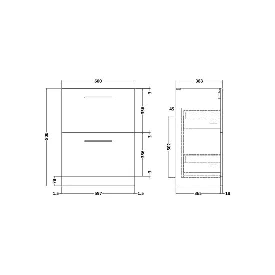 nuie Arno 600mm Floor Standing 2-Drawer Unit - Gloss White