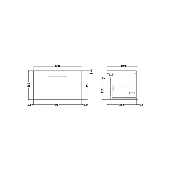 Arno 600mm Wall Hung Single Drawer Unit