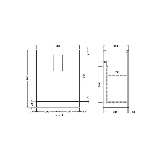 Arno Compact 600mm Floor Standing 2-Door Unit Compact