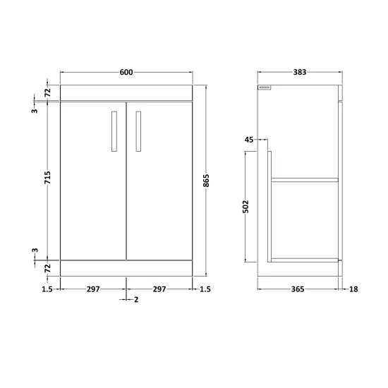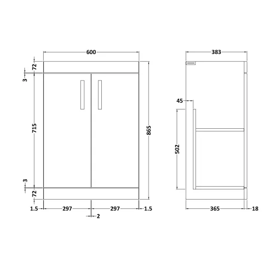 Athena Floor Standing 2 Door Vanity Unit 600mm