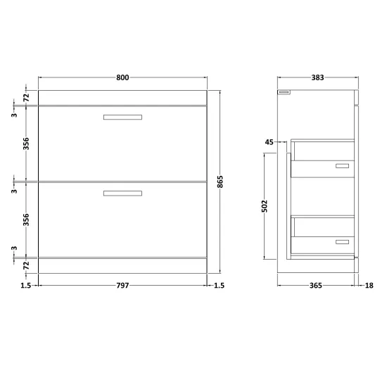 Athena Floor Standing 2 Drawer Vanity Unit 800mm