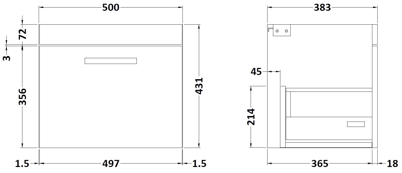 Athena Wall Hung 1 Drawer Vanity Unit 500mm