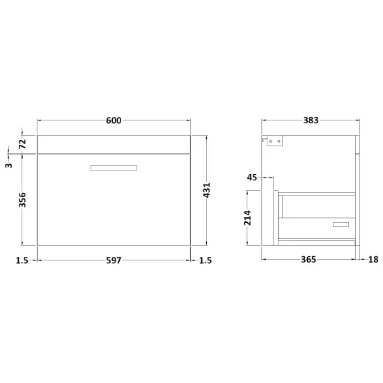 Athena Wall Hung 1 Drawer Vanity Unit 600mm