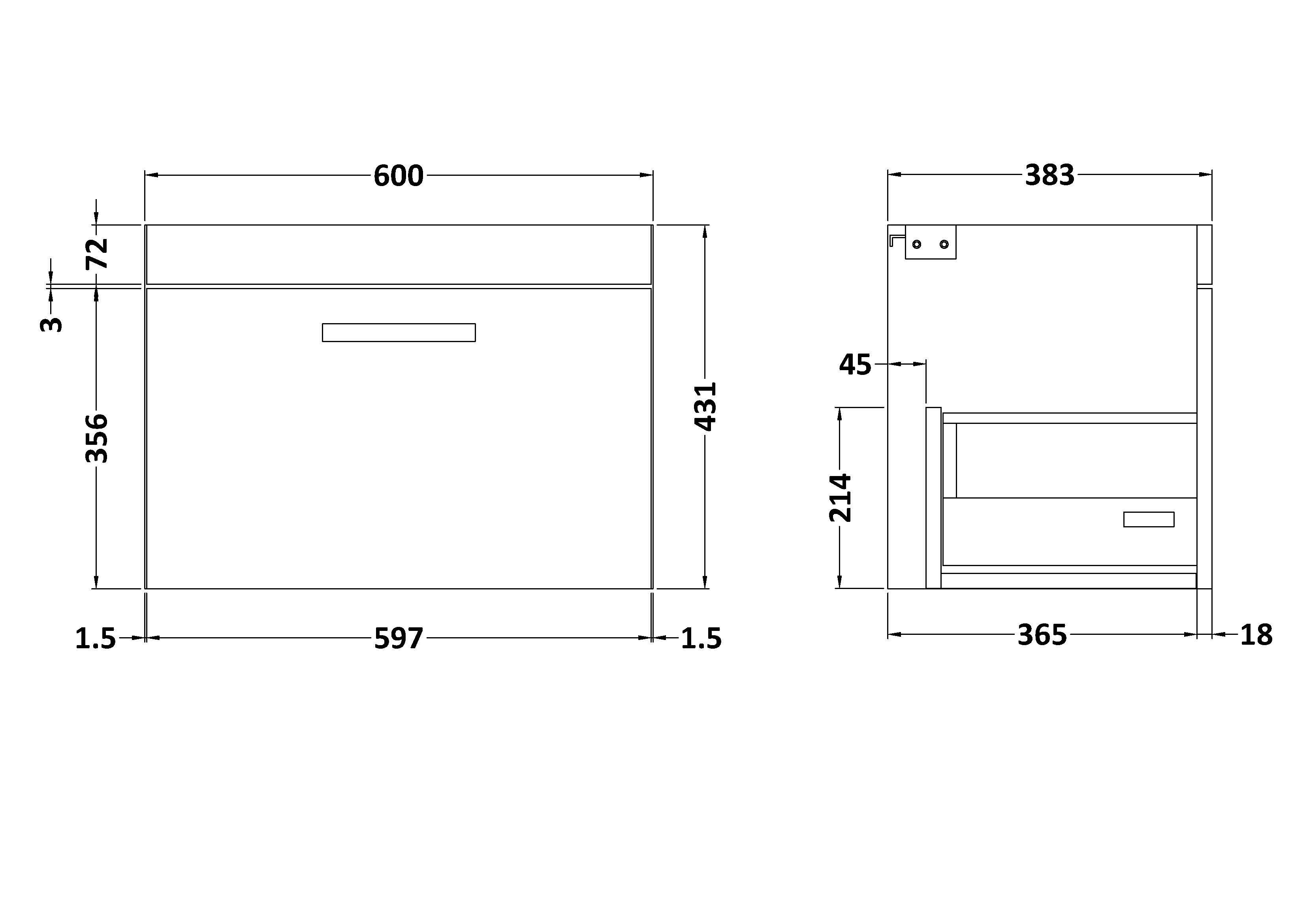 Athena Wall Hung 1 Drawer Vanity Unit 600mm