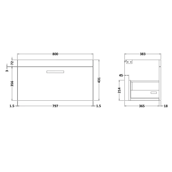 Athena Wall Hung 1 Drawer Vanity Unit 800mm