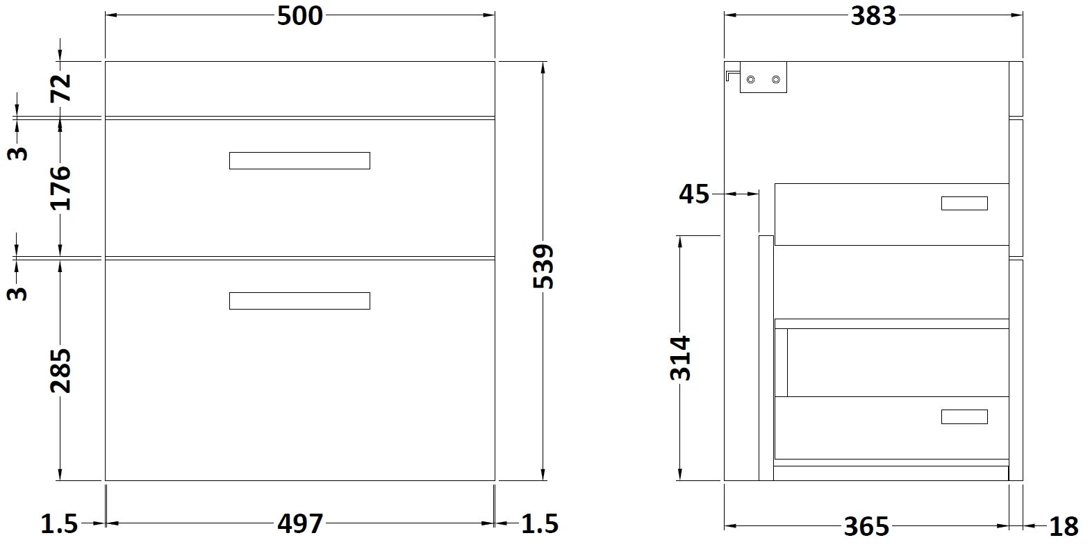 Athena Wall Hung 2 Drawer Vanity Unit 500mm