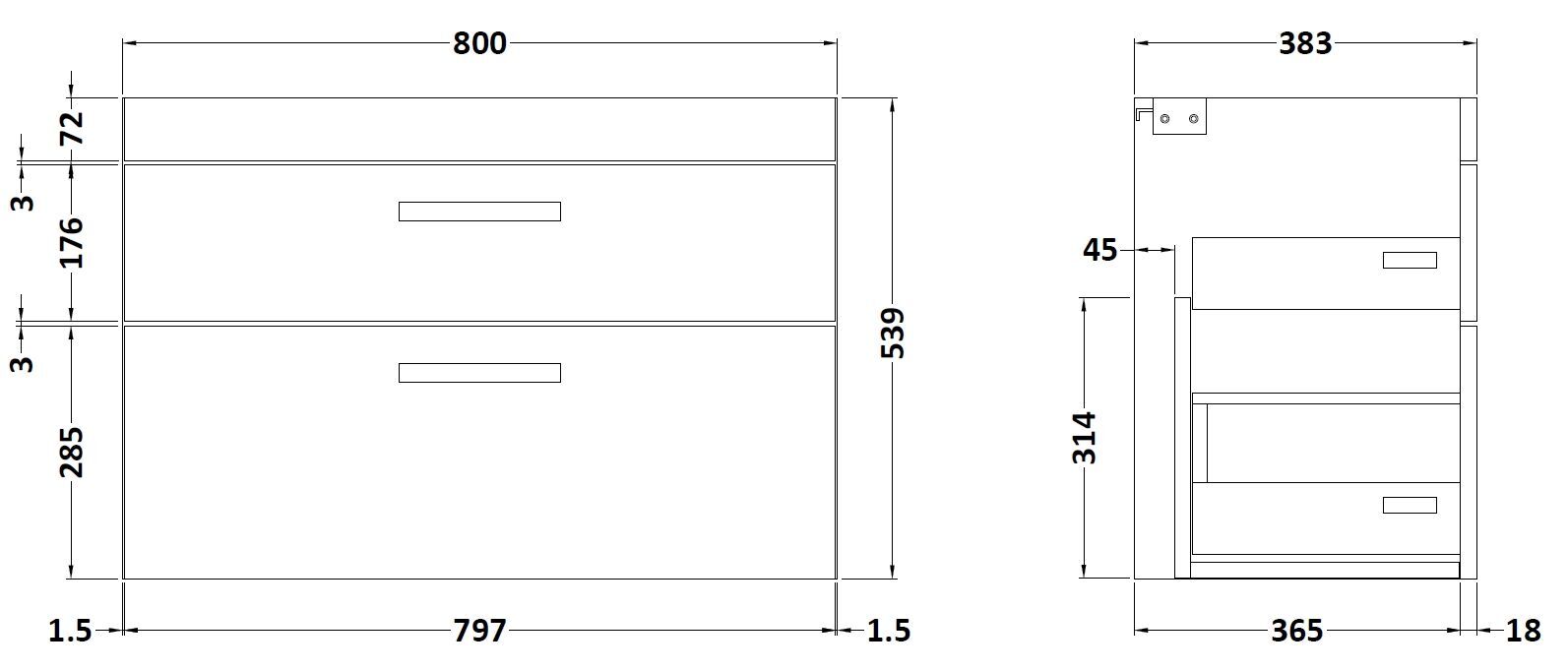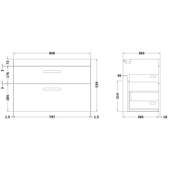 Athena Wall Hung 2 Drawer Vanity Unit 800mm