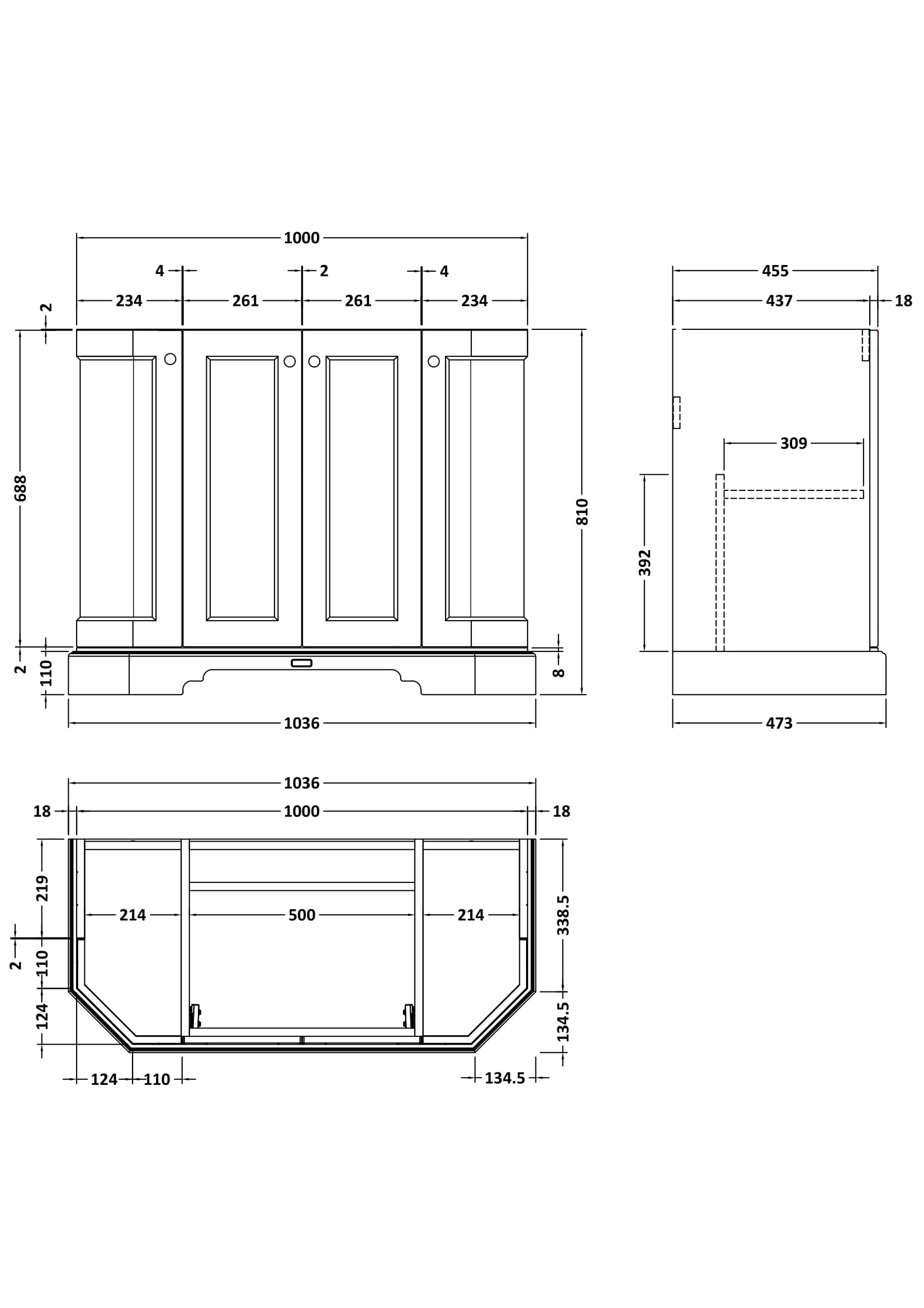 Bayswater 1000mm 4-Door Vanity Unit - Hunter Green