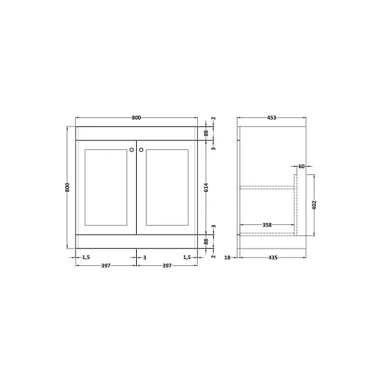 Classique Floor Standing 2 Door Unit, 800mm - Satin Grey