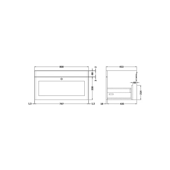 Classique Wall Hung 1 Drawer Unit, 800mm
