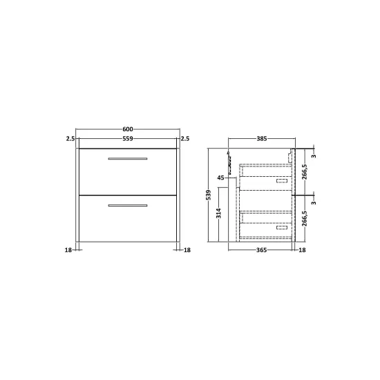 Components Wall Hung 2 Drawer Unit (385mm Deep), 600mm