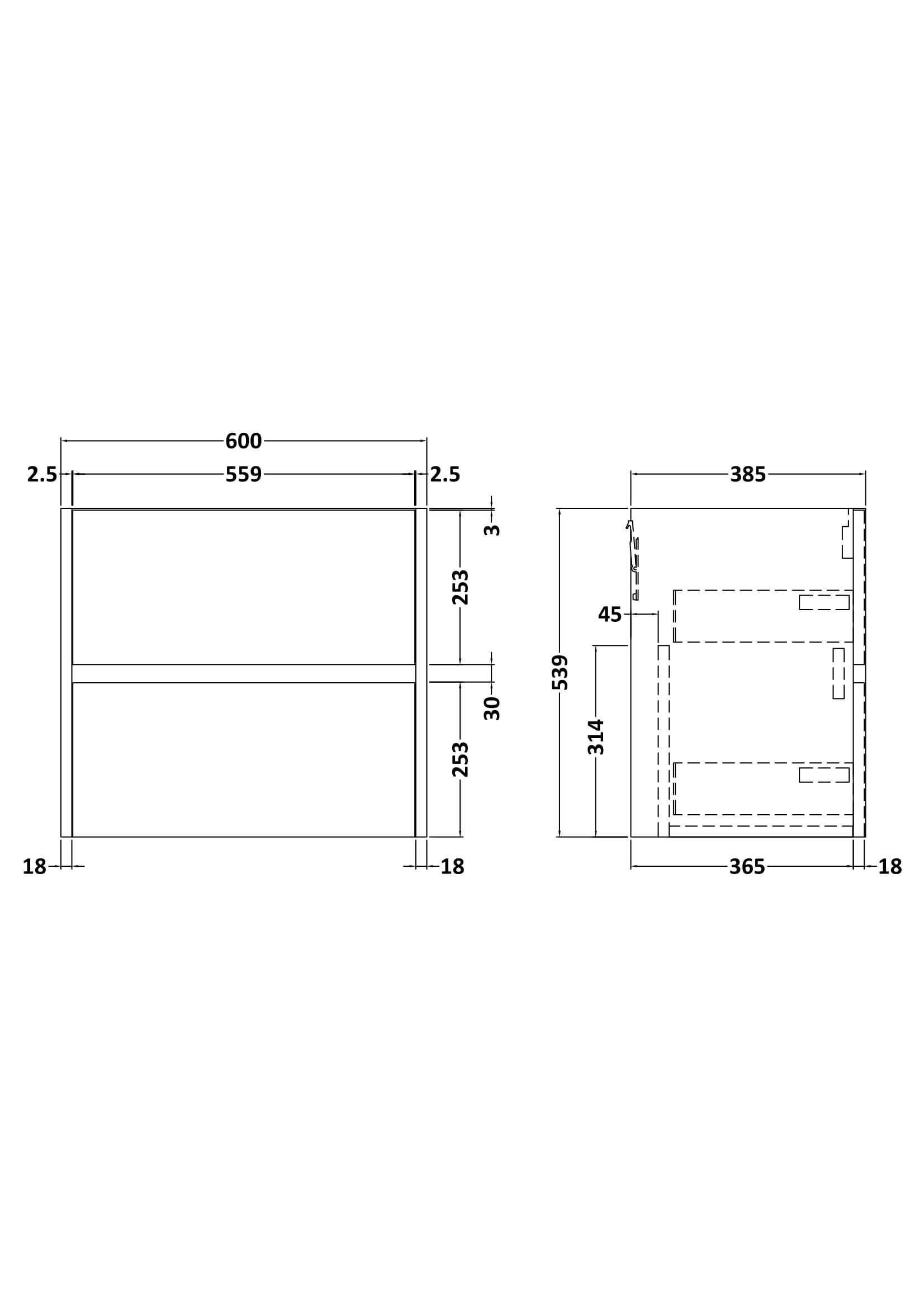 Components Wall Hung 2 Drawer Unit, 600mm