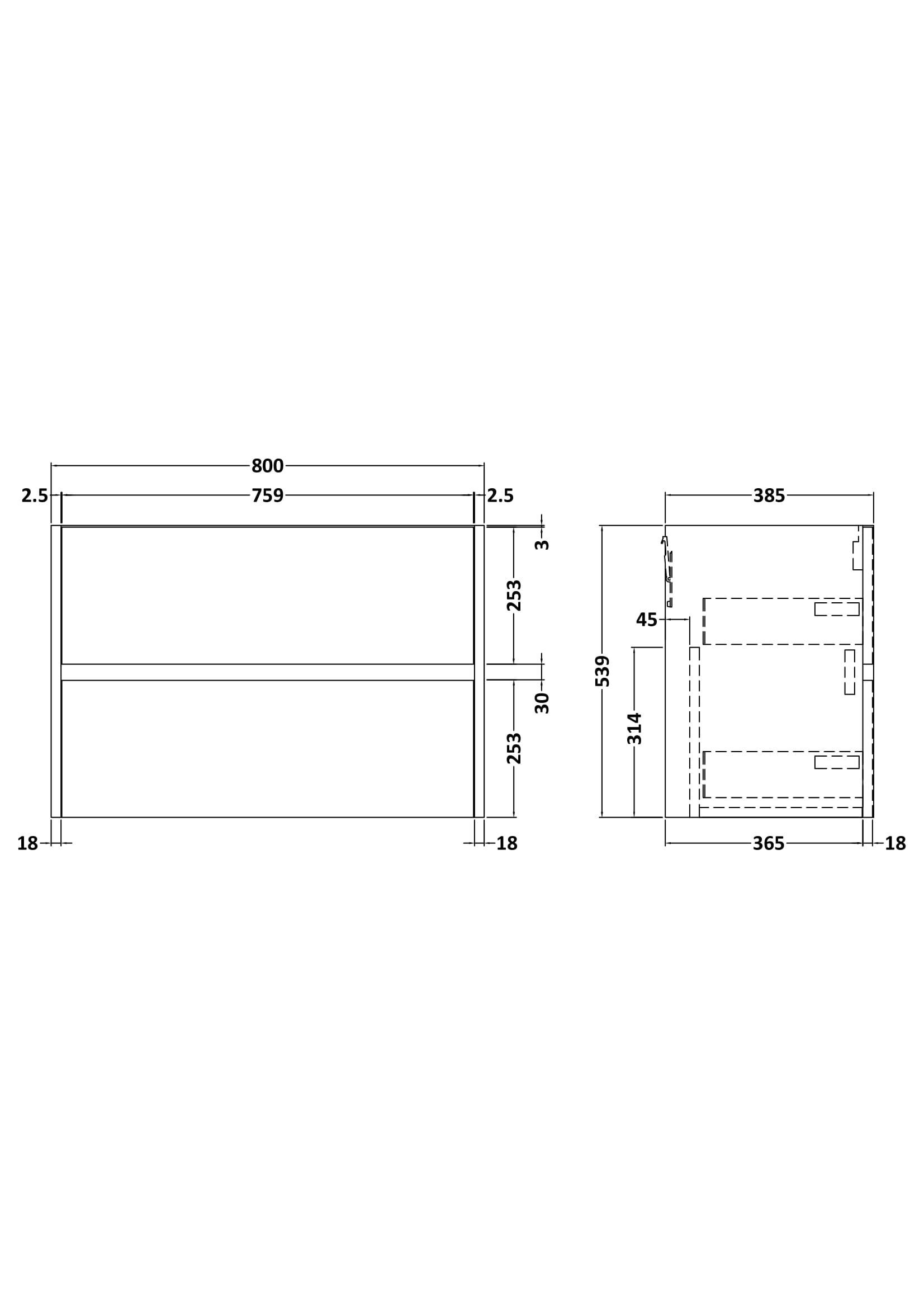 Components Wall Hung 2 Drawer Unit, 800mm