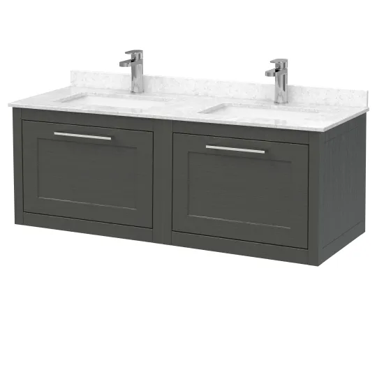 BC Designs Crestfield 1200mm Wall Hung 2-Drawer Unit & 2 Bowl Marble - Dark Lead