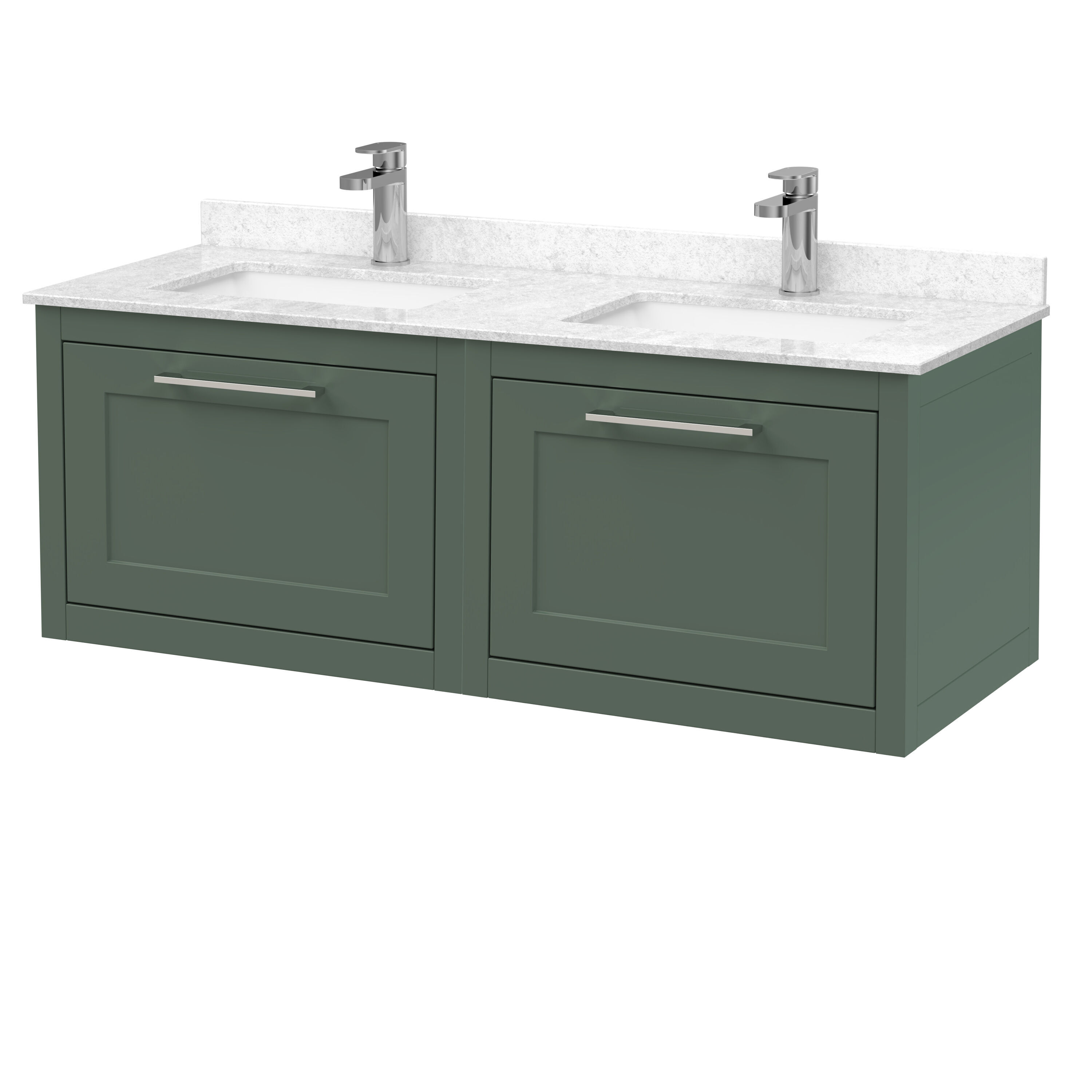 BC Designs Crestfield 1200mm Wall Hung 2-Drawer Unit & 2 Bowl Marble - Forest Green